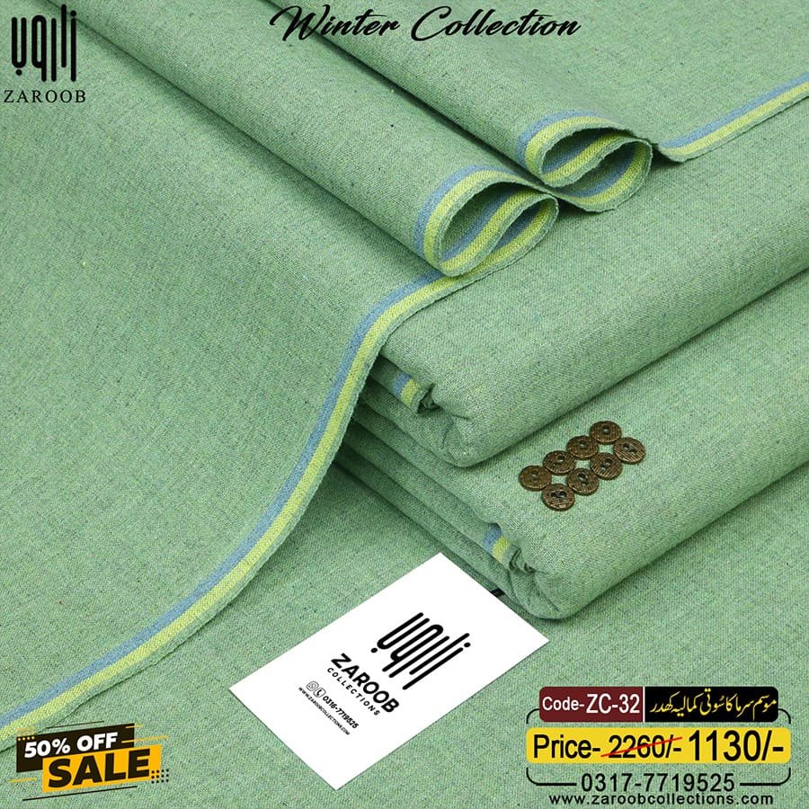 The Fabric is a blend of 100% Cotton That is Soft to Touch and Lightweight to Wear for Long Durations in The COLD. The Twisted Yarn Used to Make The Cotton Blend has a Spiral Arrangement of The Fibers Around The Axis of The Thread. Available In 7 Meters in Length And A Width Of 1 Yard, That Can Be Easily Tailored to Every Possible Body Shape And Size.