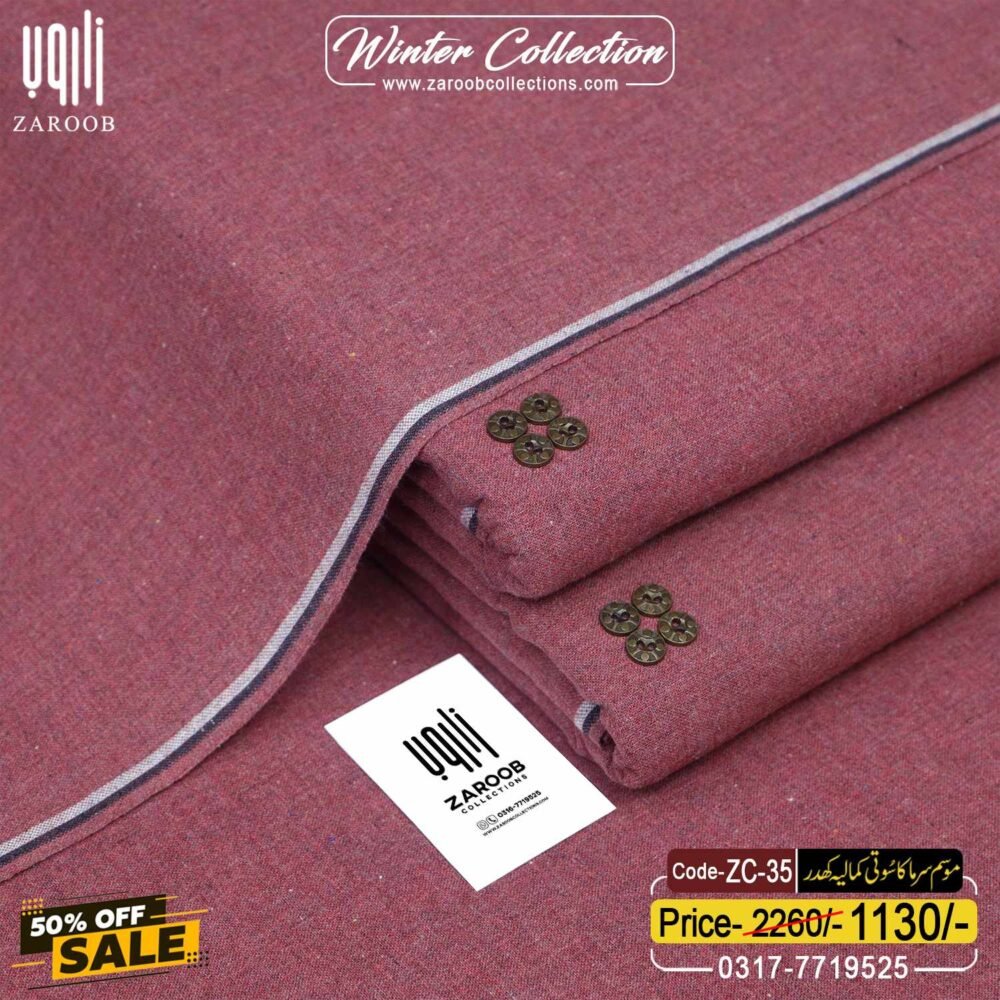 The Fabric is a blend of 100% Cotton That is Soft to Touch and Lightweight to Wear for Long Durations in The COLD. The Twisted Yarn Used to Make The Cotton Blend has a Spiral Arrangement of The Fibers Around The Axis of The Thread. Available In 7 Meters in Length And A Width Of 1 Yard, That Can Be Easily Tailored to Every Possible Body Shape And Size.