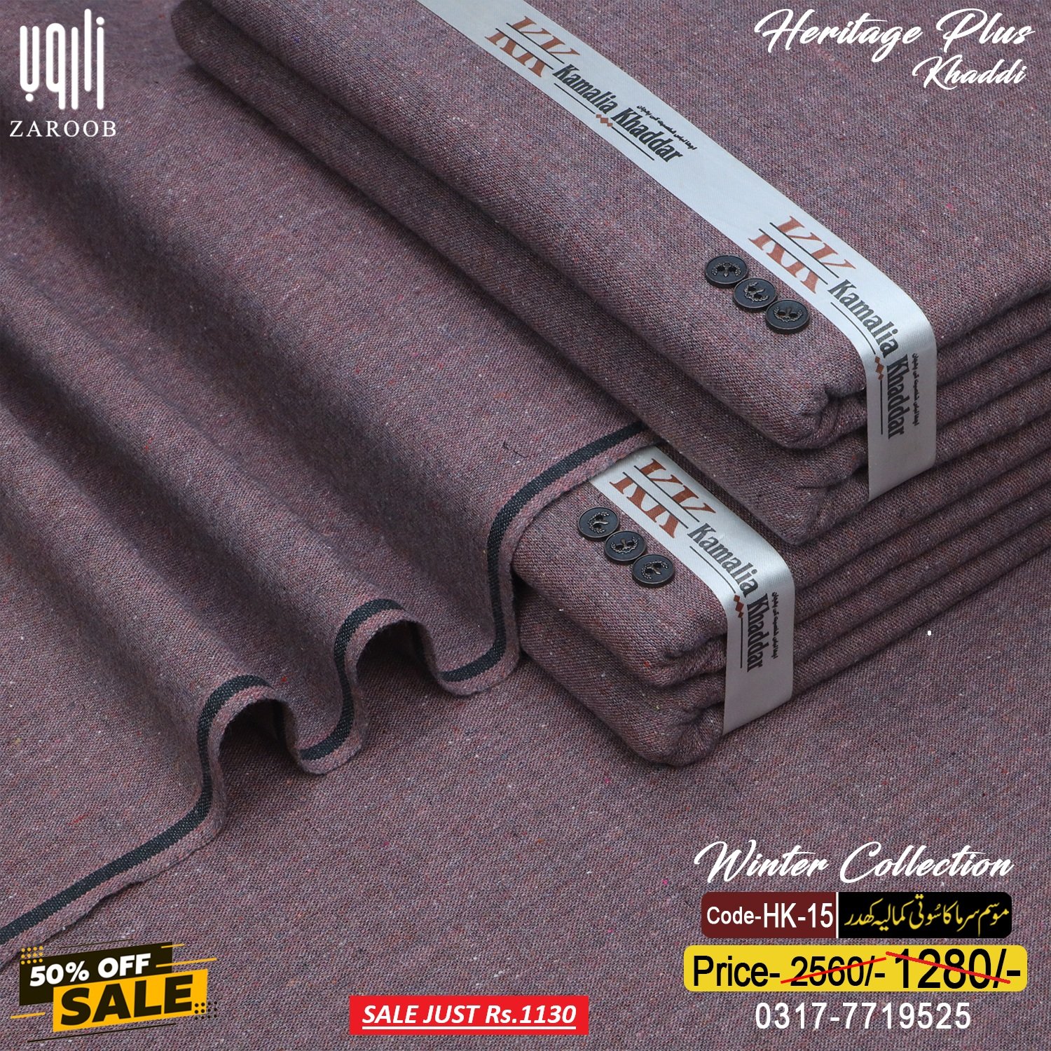 KAMALIA WINTER HERITAGE PLUS KHADDI is a Non-Chemicalized Fabric Characterized By Luster, Durability, And An Intense Soft Feel For Human Skin.