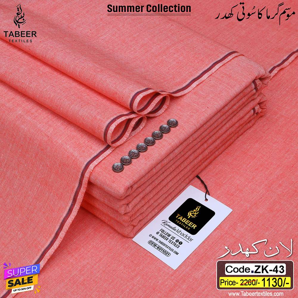 KAMALIA SUMMER LAWN KHADDAR  is a Non-Chemicalized Fabric Characterized By Luster, Durability, And An Intense Soft Feel For Human Skin.